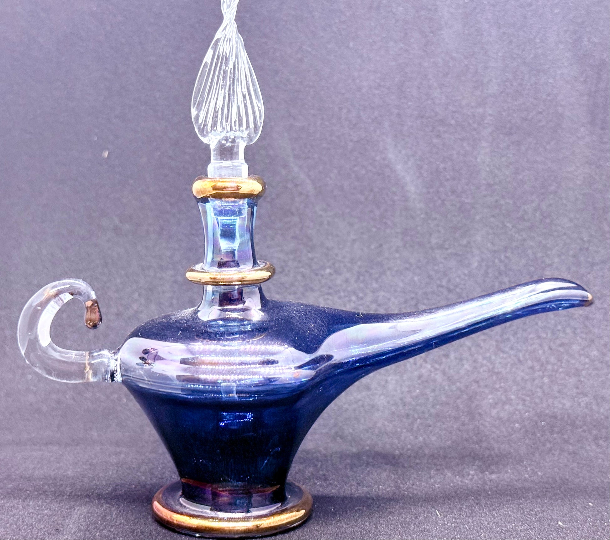 Royal Blue Pyrex Durable Handblown Genie Fragrence Oil Bottle.
