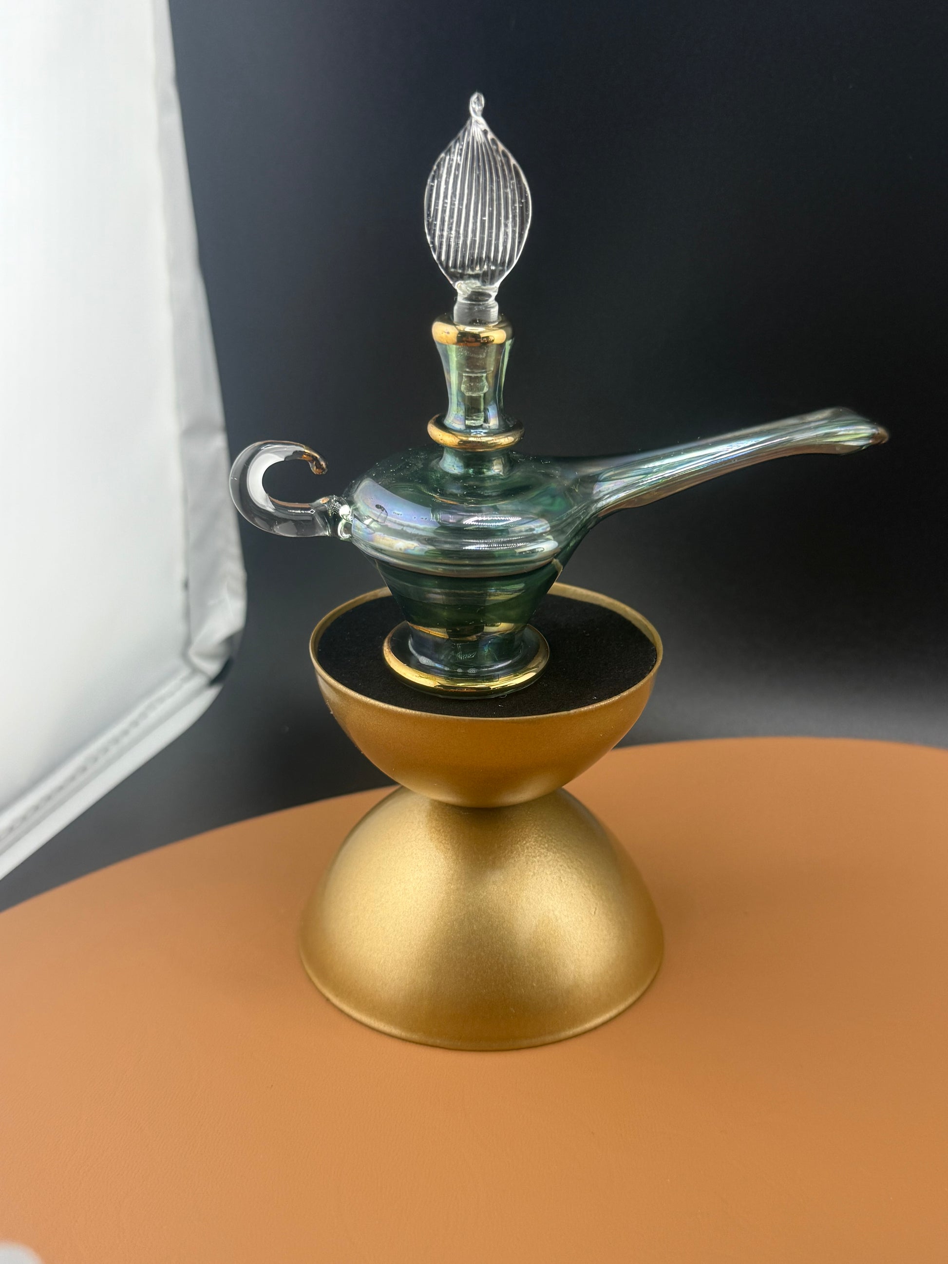 Green Glass Pyrex Durable Handblown Genie Fragrence Oil Bottle.