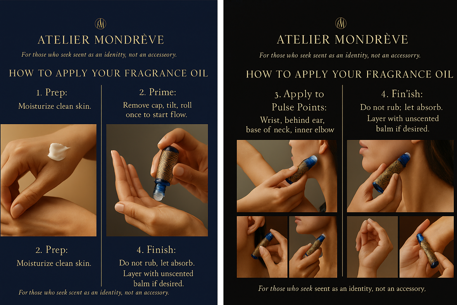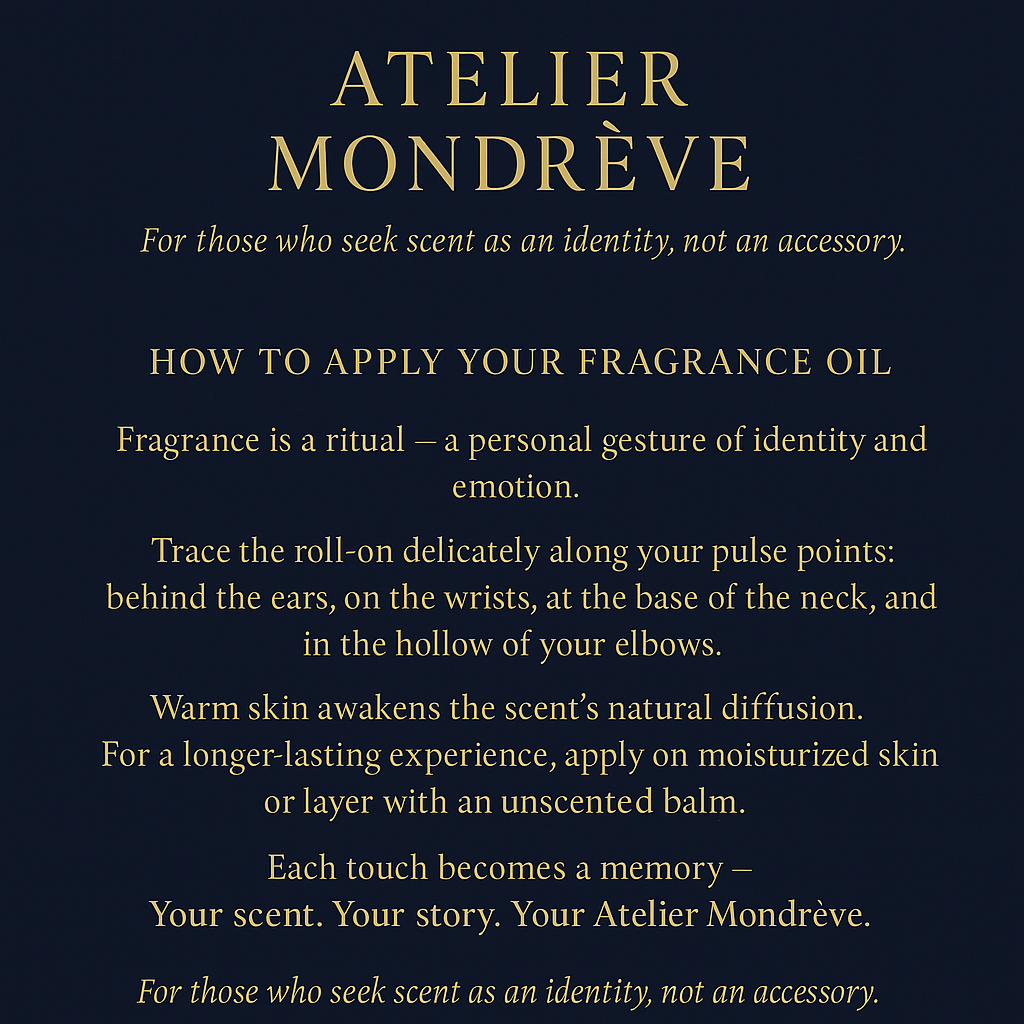 Contained within your Maison Mondrêve art bottles, each 12ml keepsake holds the gravity of an empire in the palm of your hand — designed not only to carry a scent but to honor the journey it represents.